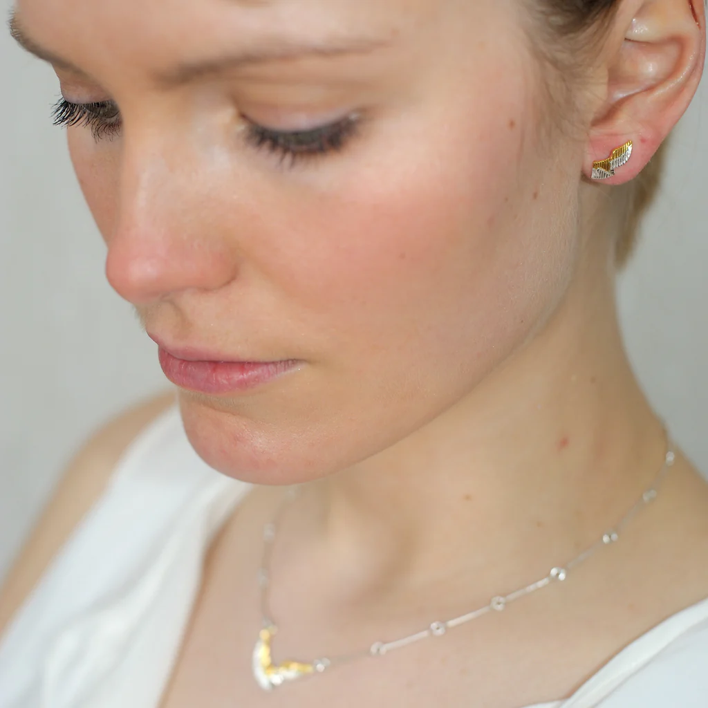 Die beiden Ohrstecker sind jeweils 15 mm lang, 925-Silber und teilweise mit Gold überzogen. Geschenkverpackung.